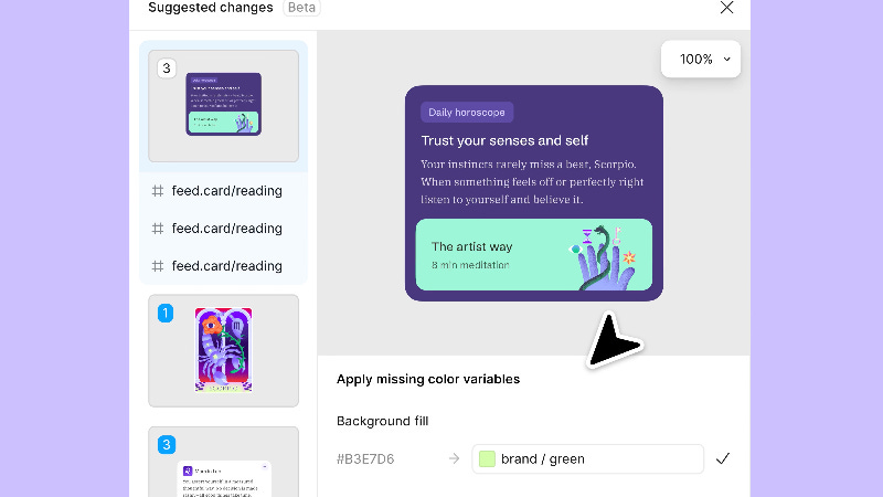 當設計師在 Figma 中建構元件時,AI 能夠理解其佈局、層次結構、狀態和響應行為,並將其轉換為乾淨、可編輯的、可供生產的程式碼。Figma 的 Design Check 新工具會自動建議每個元素的正確變數,使設計與程式碼的對齊更容易、更準確。傳統的「交接」不再是一個漫長的階段,而是一個「瞬間」。